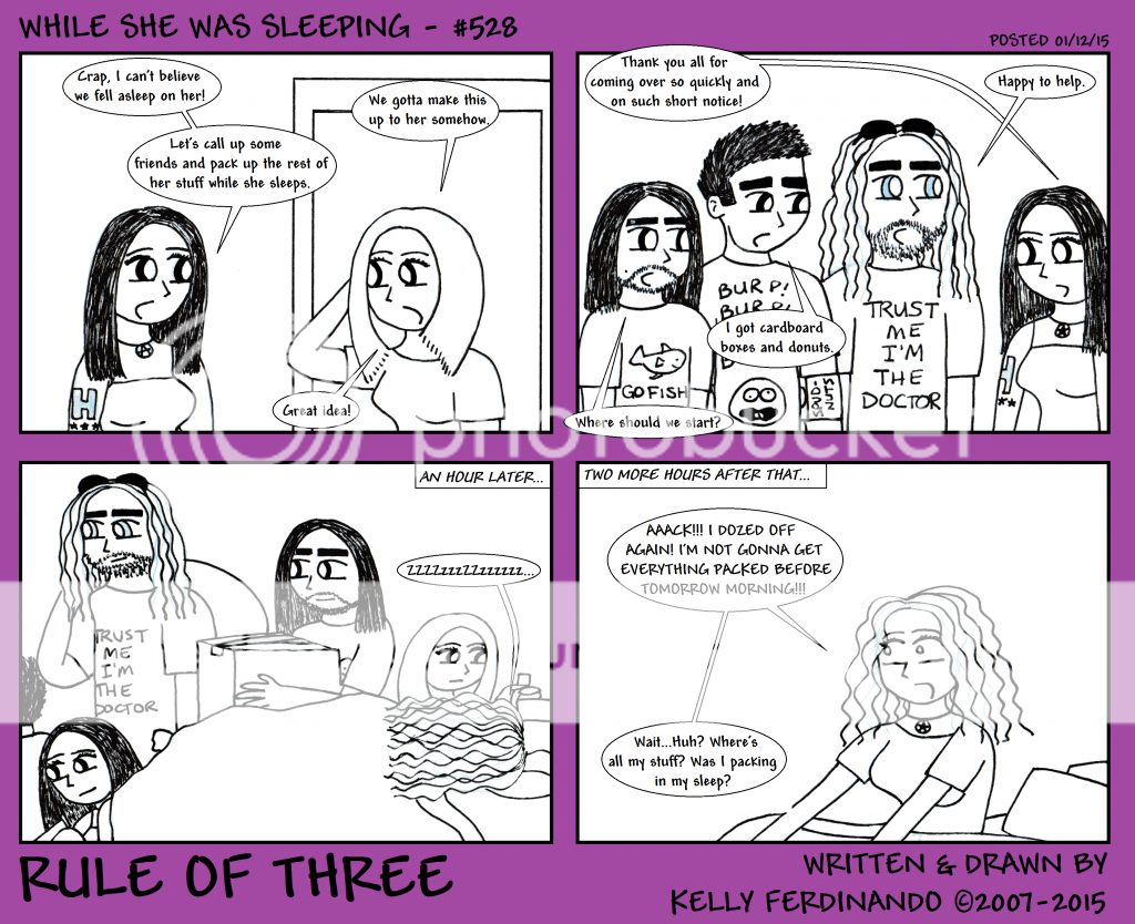 Thanks to all of you for reading my silly little comic for the last 7 and a half years. And special thanks to my husband Peter for supporting me in this little endeavor, and to Heather, Mikki, Bobbi, Lucille, Nicole, Joe, Aileen, Erin, Lisa, and all the rest of my friends who have allowed me to use them as character muses over the years, and to Thomas and Tanya for the crossover fun :)